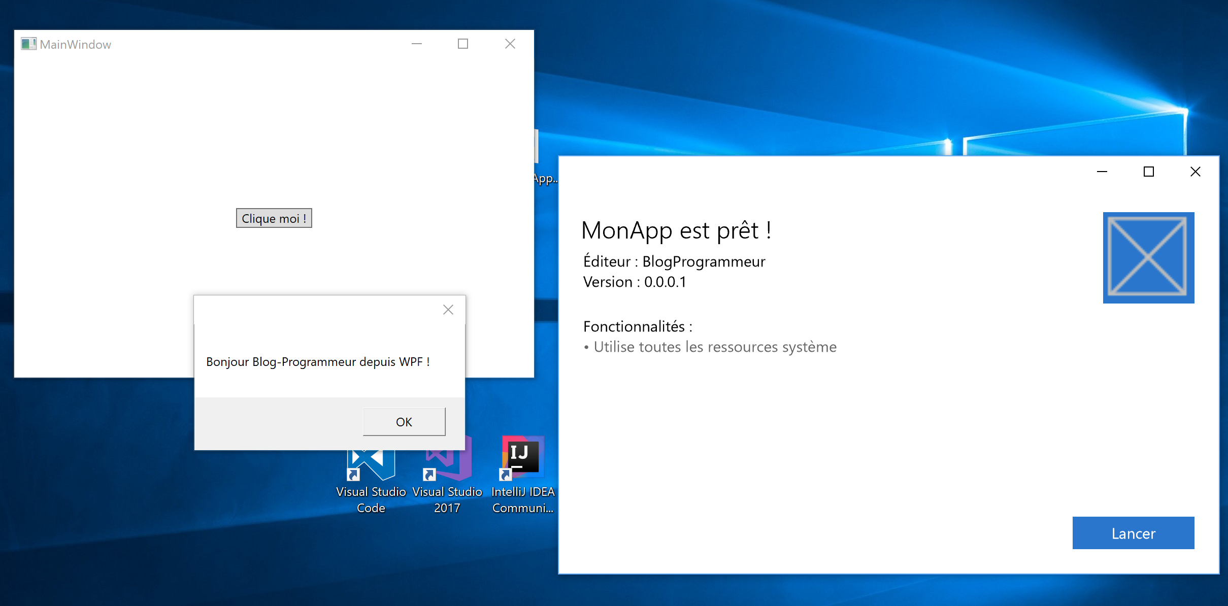 MessageBox.Show("Bonjour Blog-Programmeur depuis WPF !");